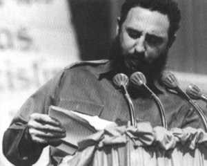 Ο Φιντέλ Κάστρο διαβάζει το γράμμα του Τσε σε δημόσια συγκέντρωση στην Αβάνα, 1965